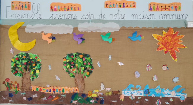 “Ensemble, prenons soin de notre maison commune“La Création Après 3 semaines de classe, nous avons fait notre rentrée avec Jésus, c’est lui qui nous a rassemblés lors de cette messe dans ce lieu que nous aimons tous, nous lui avons confié notre année. La fresque affichée au mur, créée à partir des éléments réalisés par…